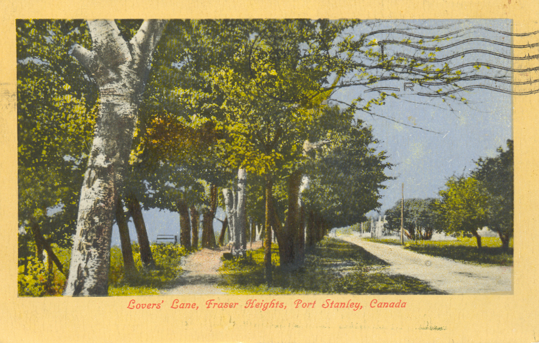 This view of Invererie Heights is entitled, on the postcard which displays it, “Lover’s Lane, Fraser Heights, Port Stanley, Canada”. This surrounding area was originally called...